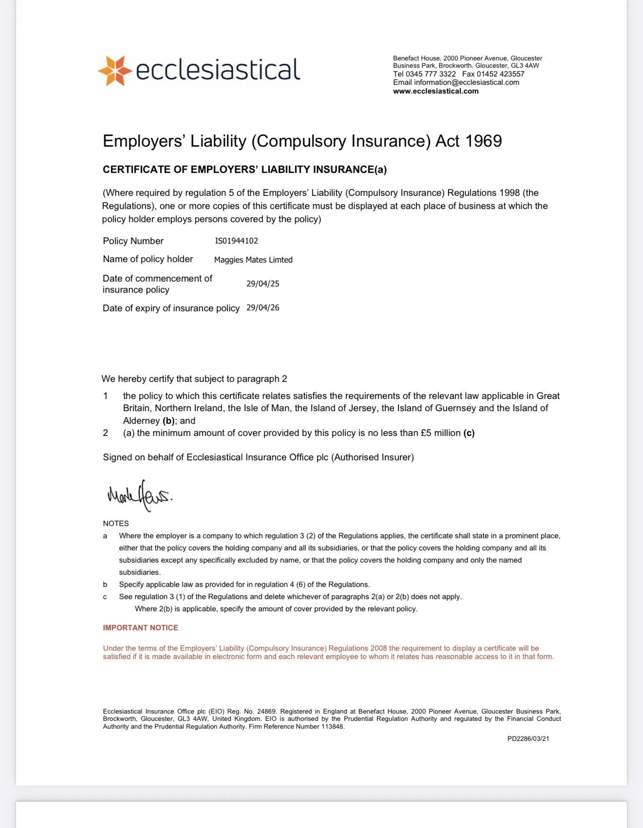 You can find here our license number alongside our public liability insurance policy number.